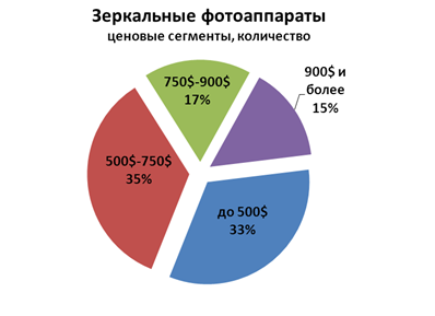 (140 thousand units), while in 2011 they accounted for only 8%. It should be noted that in terms of money segment SLR cameras took 40% of the market (2011 - 30%). In the top five producers housed Nikon, Canon, Samsung, Sony and Olympus. Together, they occupy 85% of the market. In the segment of SLR cameras more than 95% of sales are in two brands - Canon and Nikon. In the structure of sales by price segment to the consumer the most interesting budget device. compact cameras in the segment over 61% of units sold are in the price range of "up to $ 150." On the segment 150 $ -300 $ sales accounted for 29%, and "$ 300" only 6% (in quantitative terms). The average price of compact cameras was $ 154. The most popular price range for SLR "500 $ -750 $", it accounted for 35%. For the price of less than $ 500 was bought 33% SLR cameras. Average price SLR - $ 639. In